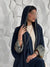 What sets this piece apart is its subtle yet striking detailing — delicate patterned accents along the front trim and sleeve cuffs add depth and a touch of artistry, complementing the minimalist base. The matching scarf enhances the overall look, allowing for seamless styling whether worn casually or for more refined occasions.